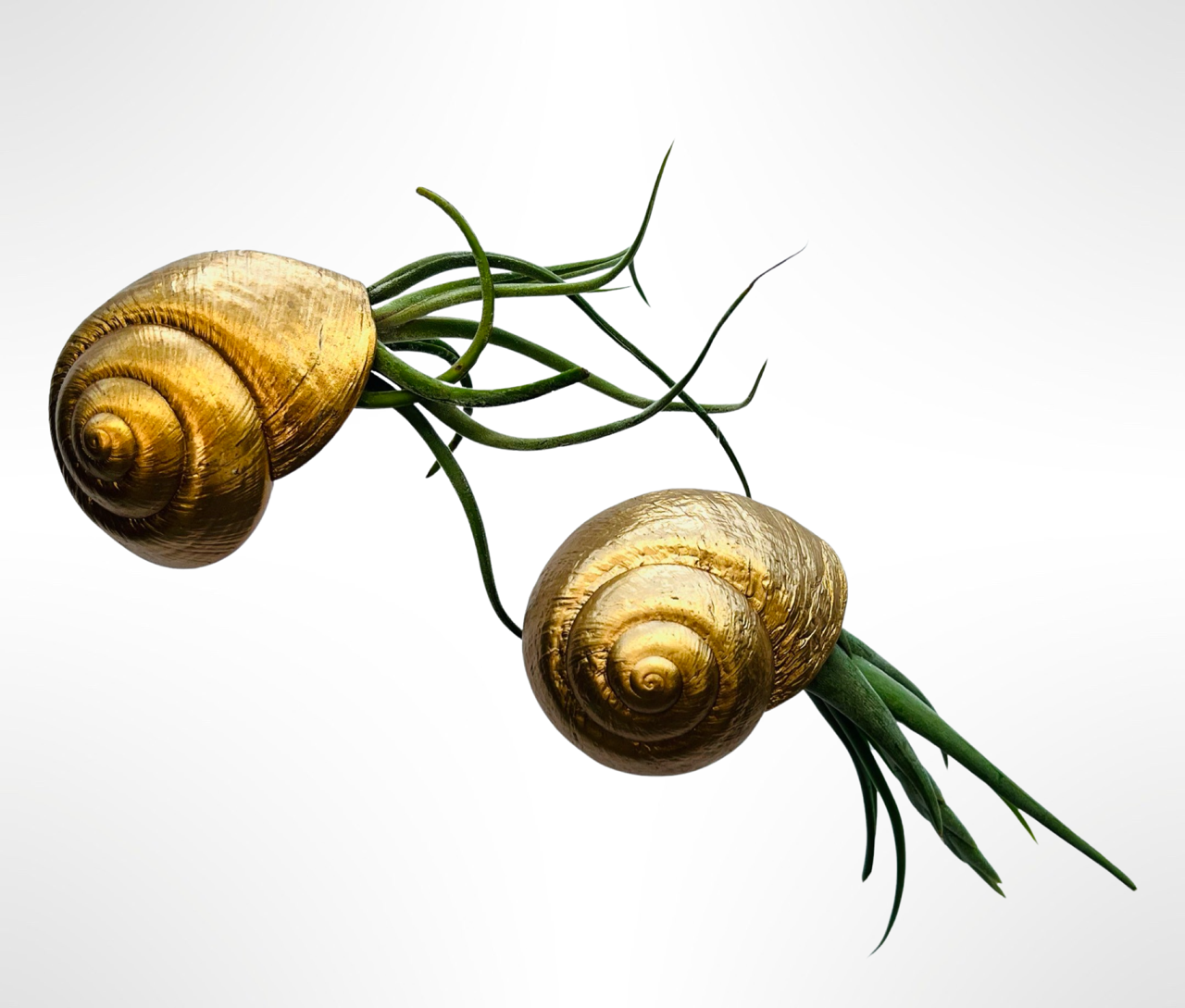 Nautilus-Luftpflanzen mit Schneckenperlenschalen in Gold.