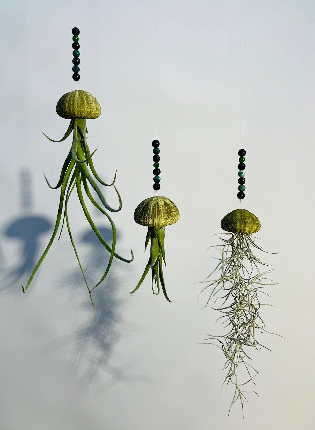 Eine luxuriöse Variante unserer Quallen-Luftpflanzen, angereichert mit einigen wunderschönen Perlen aus Holz und Natursteinen.