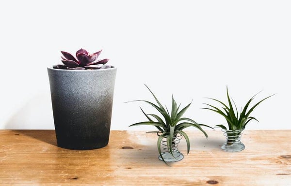 Tillandsia Capitata in einem schönen Luftpflanzenhalter aus Metall.