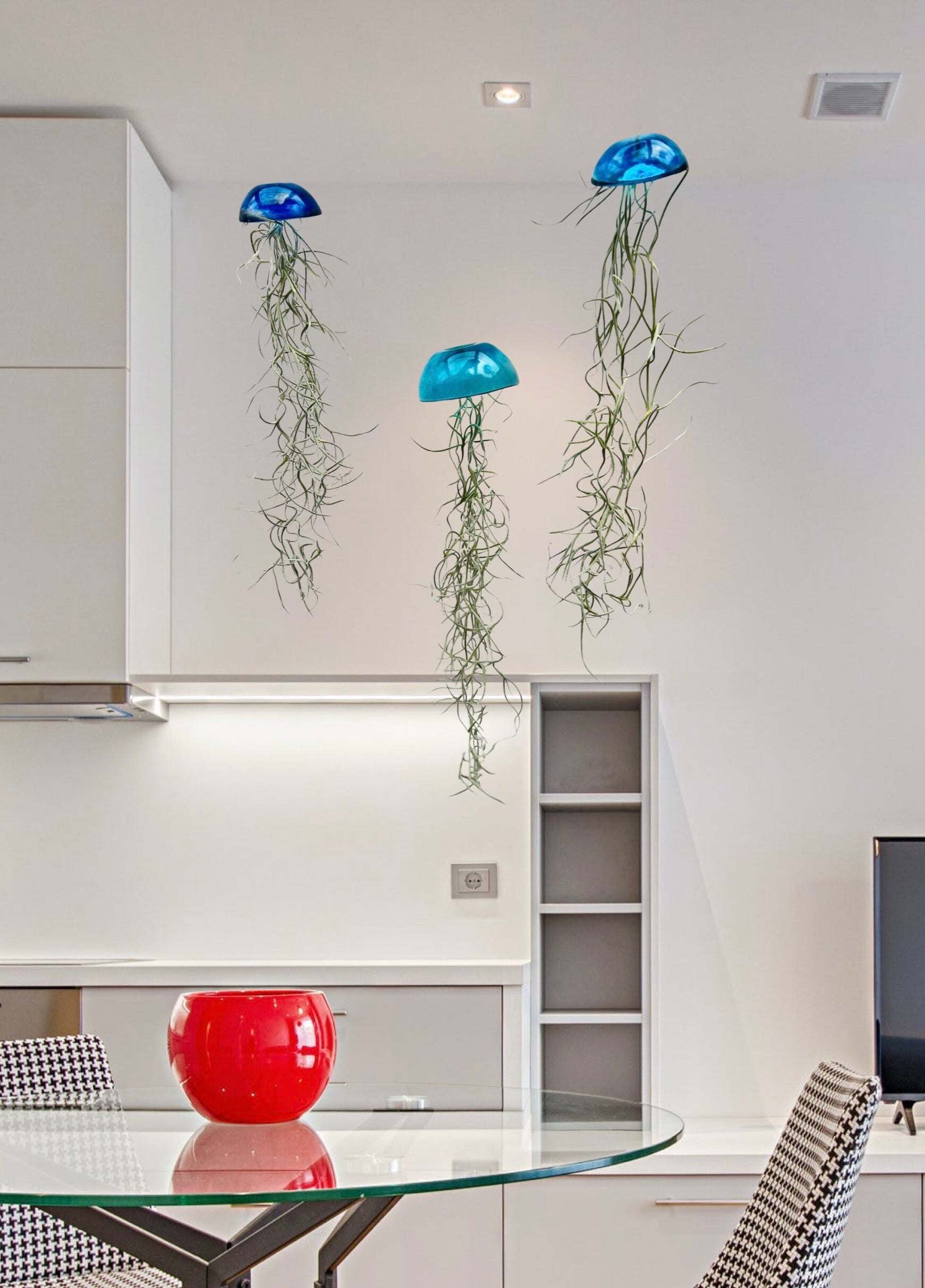 Mooie glazige Jelly-fish luchtplantjes met Spaans Mos Aqua/blauw