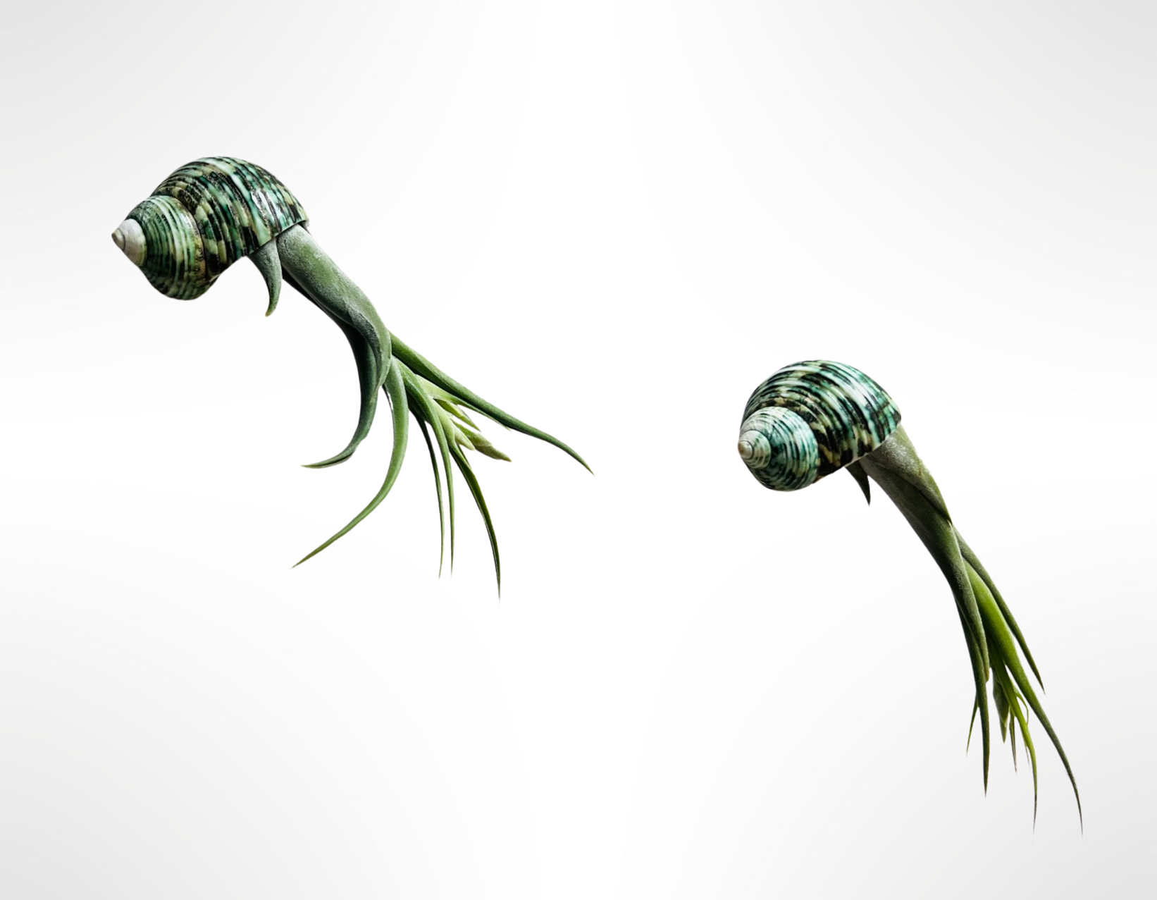 Nautilus Luftpflanzen mit einer Turbo Sparverius Meeresschnecke und einer Tillandsia Circinati.