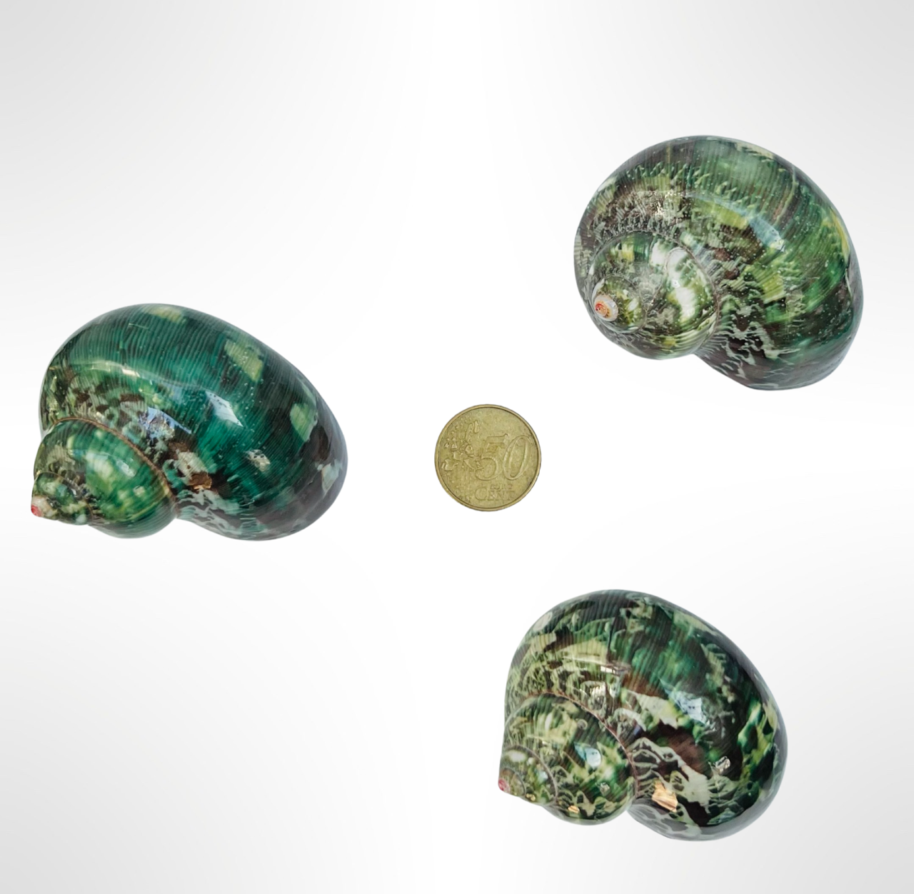 Nautilus-Luftpflanzen mit grünlichen Turbo Petholatus-Schalen.