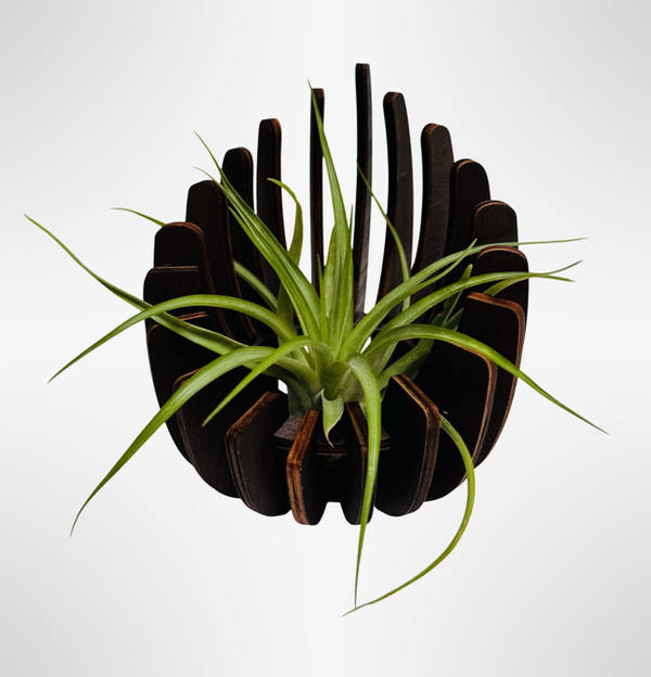 Ein charmanter, kunstvoller Holzhalter, der eine Tillandsia Brachycaulus Abdita wunderschön in Szene setzt.