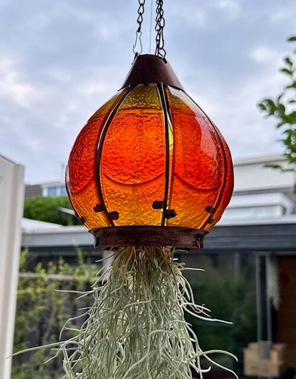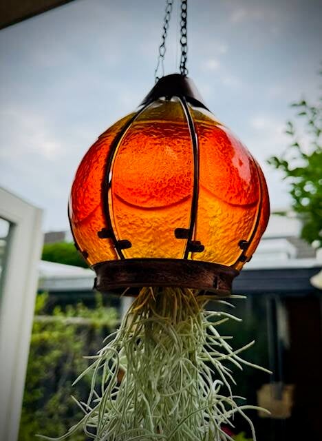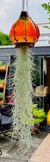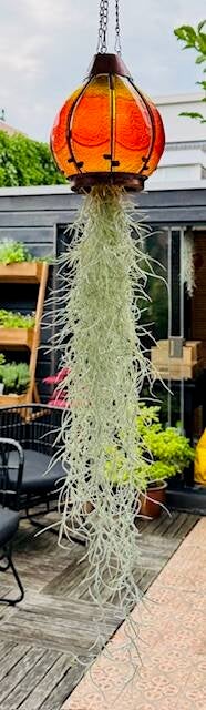 Ein wunderschönes Ornament aus robustem, handgeblasenem Glas dient als Dekoration für einen schönen Strauß Tillandsia Usneoides, auch bekannt als Spanisches Moos.Ein echter Blickfang ist eine großartige Farbe.